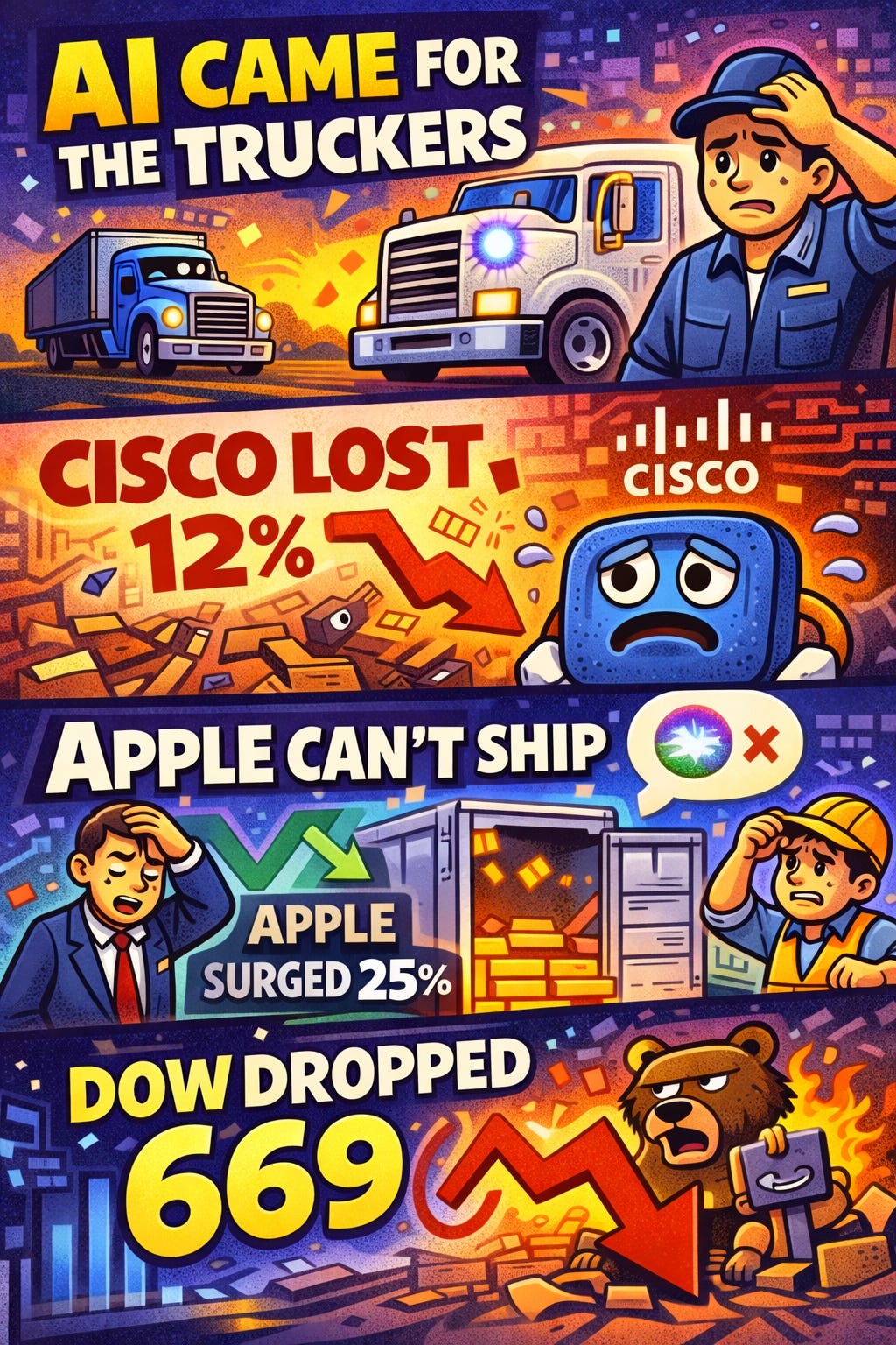 AI Came for the Truckers, Cisco Lost 12%, Apple Can't Ship Siri, and the Dow Dropped 669 – Market Breakdown #177