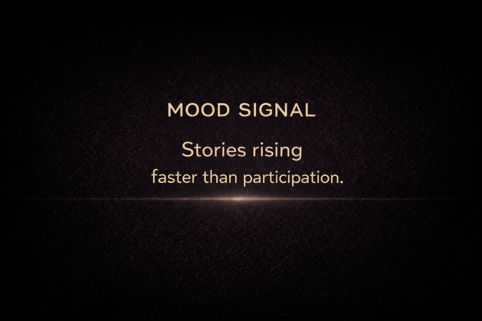People are searching for explanations after behavior has already shifted. When this mood dominates, narratives multiply while clarity decreases. The increase in storytelling is often a sign that conviction has already moved on.