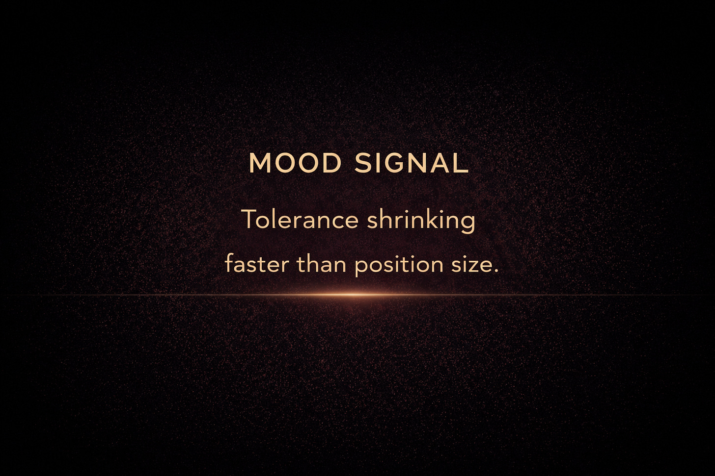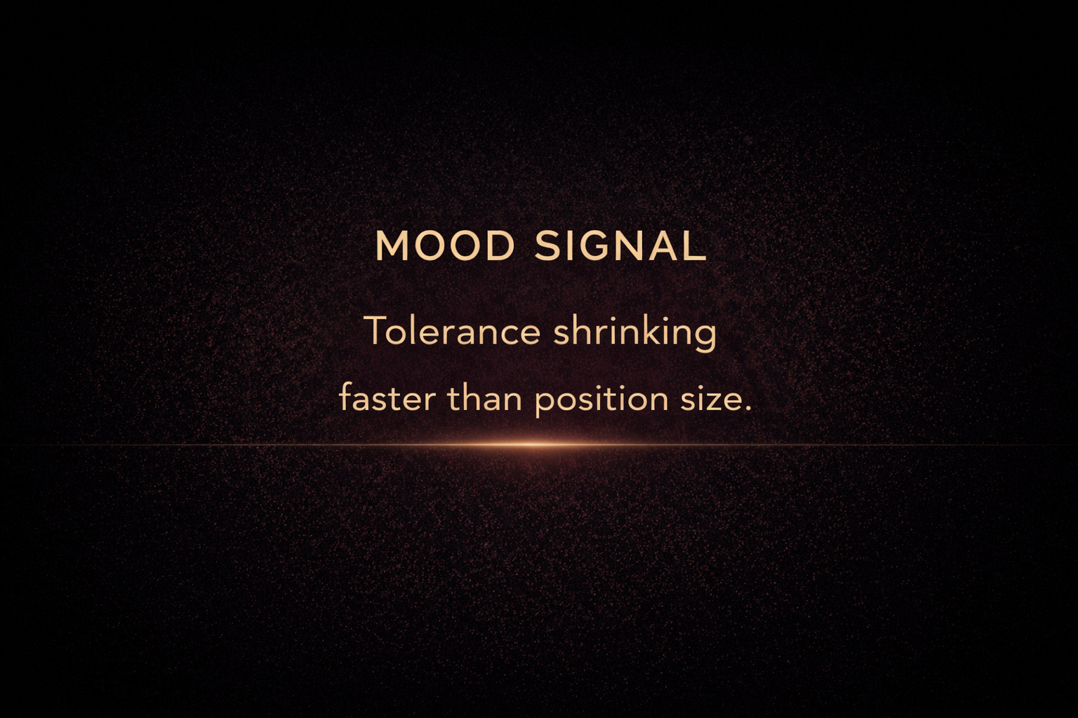 Confidence turns brittle. Small fluctuations feel larger than they should. Attention narrows. Decision making speeds up even as clarity declines. Participants stop managing risk and start reacting to noise because tolerance has already been spent.