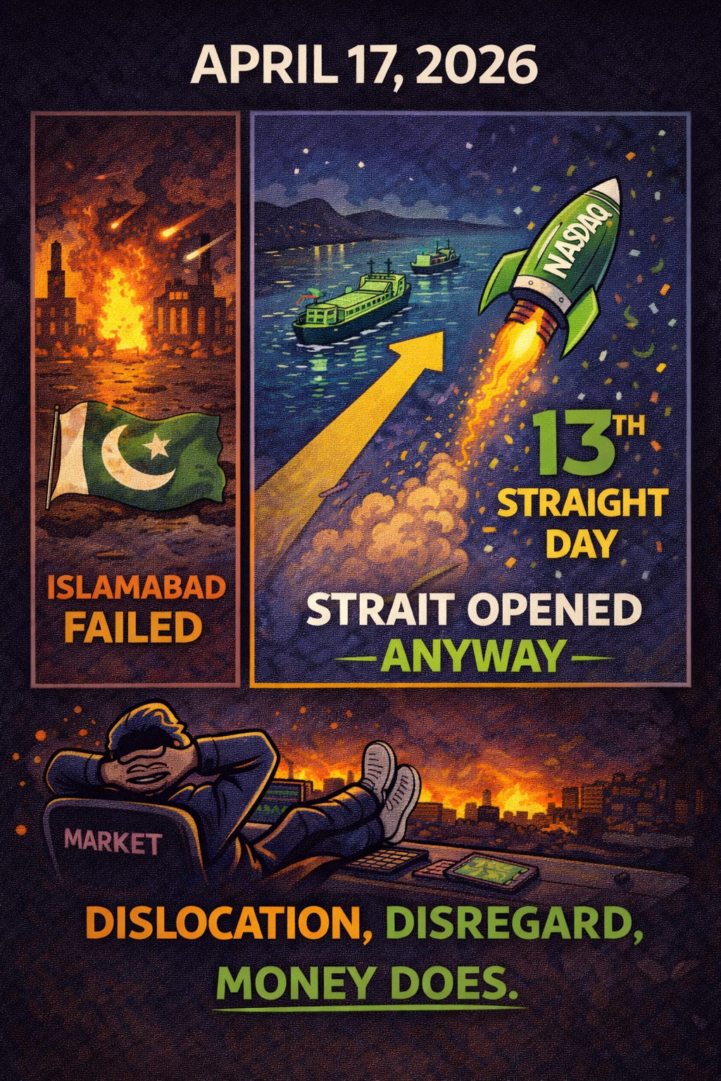Islamabad Failed. The Strait Opened Anyway. The Nasdaq Won for the 13th Straight Day.