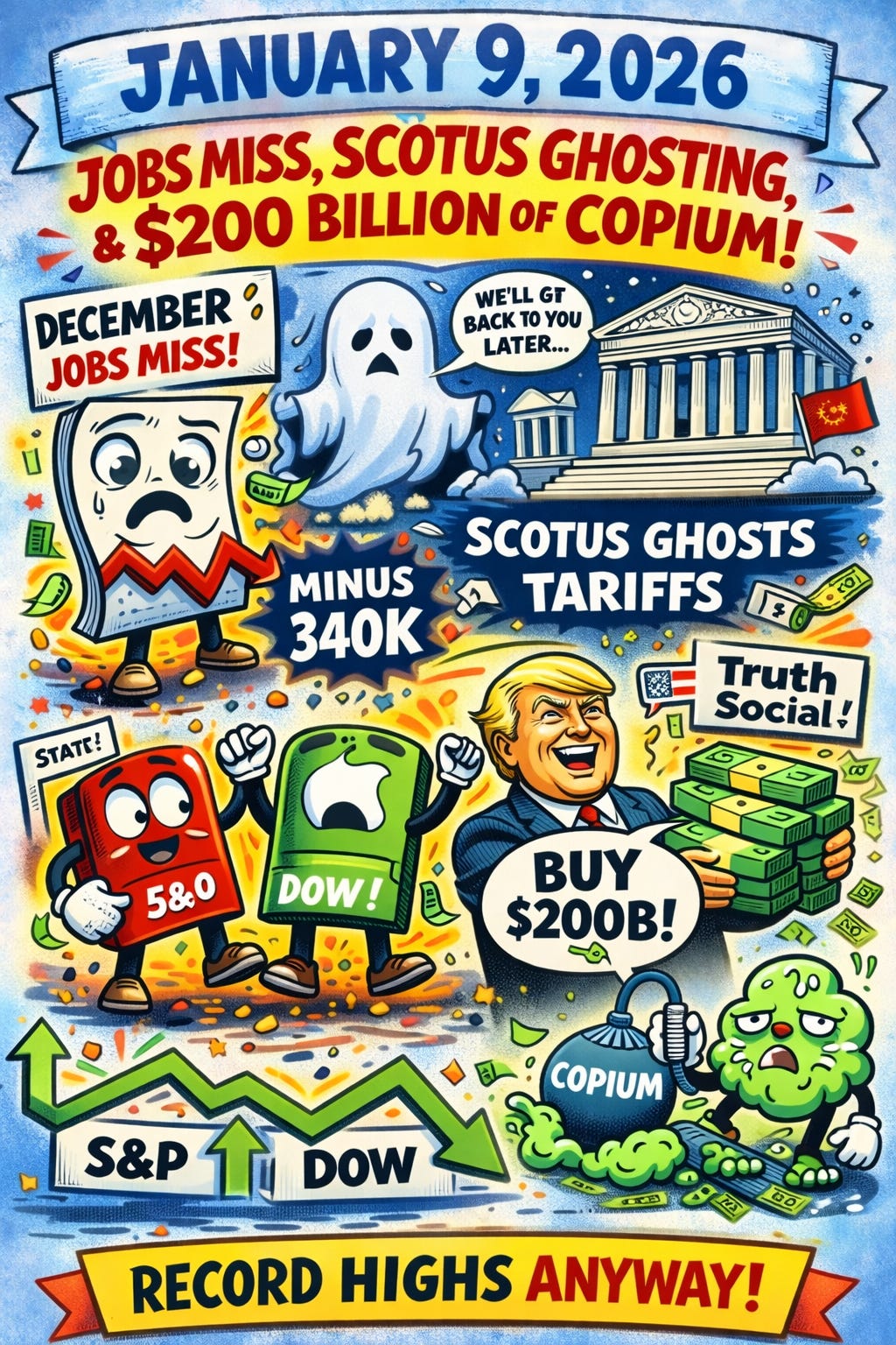 The December jobs report missed, SCOTUS punted on tariffs, and the President ordered $200 billion in mortgage bond purchases via Truth Social. Record highs anyway.