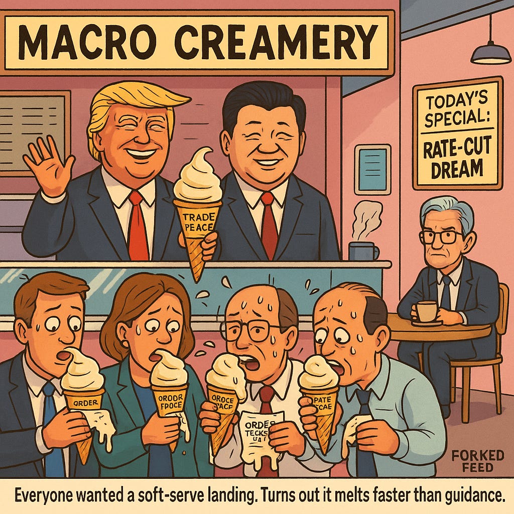 Forked Feed says: A “framework” is diplomatic code for “we drafted vibes.” The photo-op plays better than policy, but traders keep pricing détente like it’s legislation. The next tariff headline will hit faster than the ink dries on this handshake, and when it does, algos will rediscover gravity.
