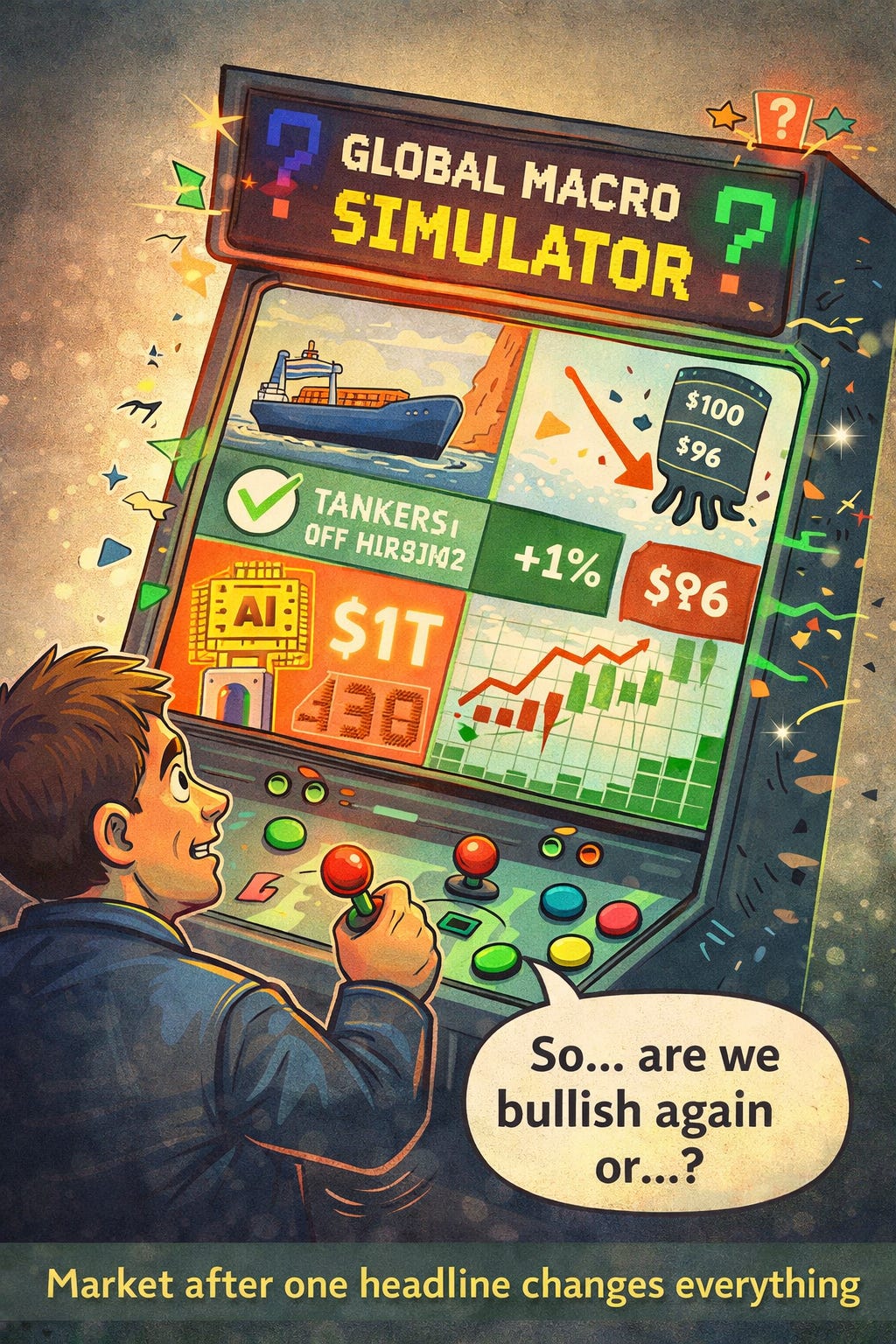 Hormuz shipping data: Watch daily tanker transit counts. “Several” needs to become “dozens” for the reopening thesis to hold.