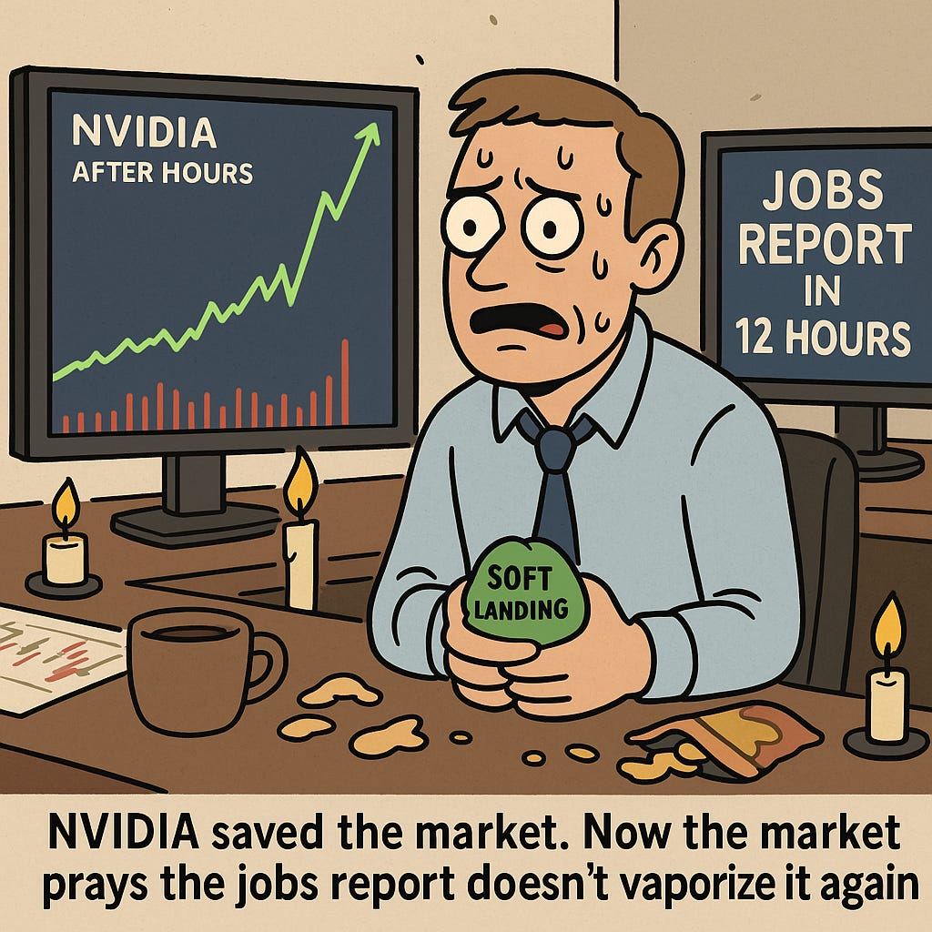 Sideways to modest upside remains the most probable. Tech enthusiasm is likely to widen into other sectors since Nvidia delivered. If yields lift, markets contract. Everything feels like a negotiation between hope and math.