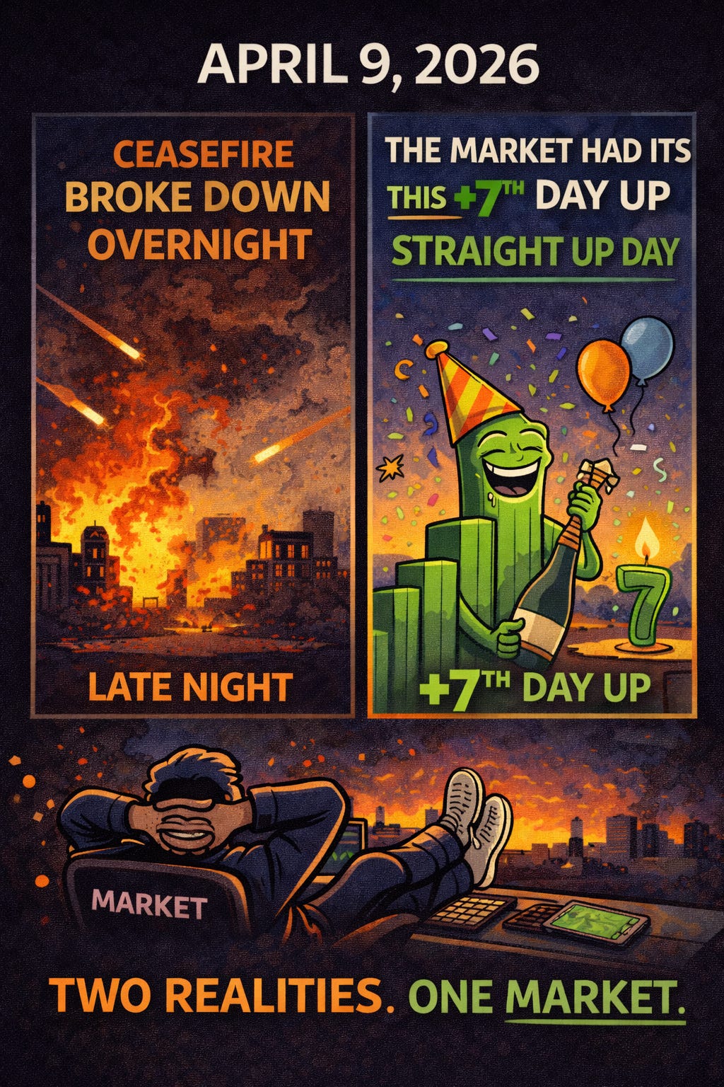 The Ceasefire Broke Down Overnight. The Market Had Its 7th Straight Up Day.