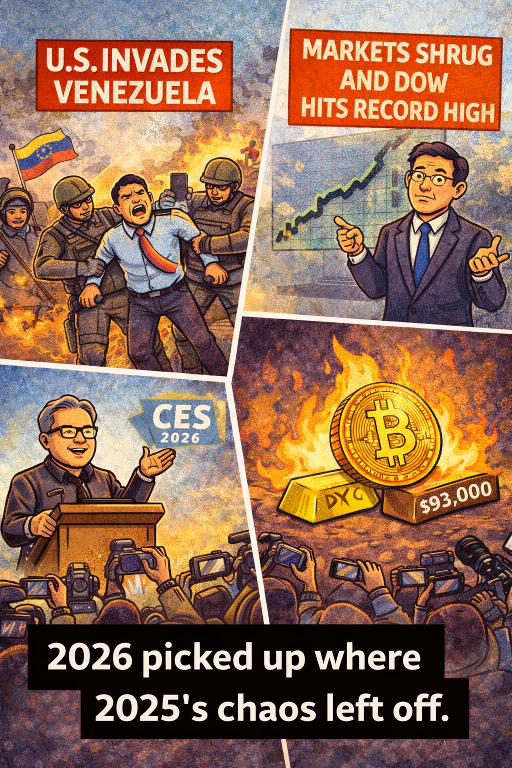Five days into 2026. One invasion. One all-time high. One record Bitcoin pump. One CES keynote. One emerging sense that this year will be at least as strange as the last.